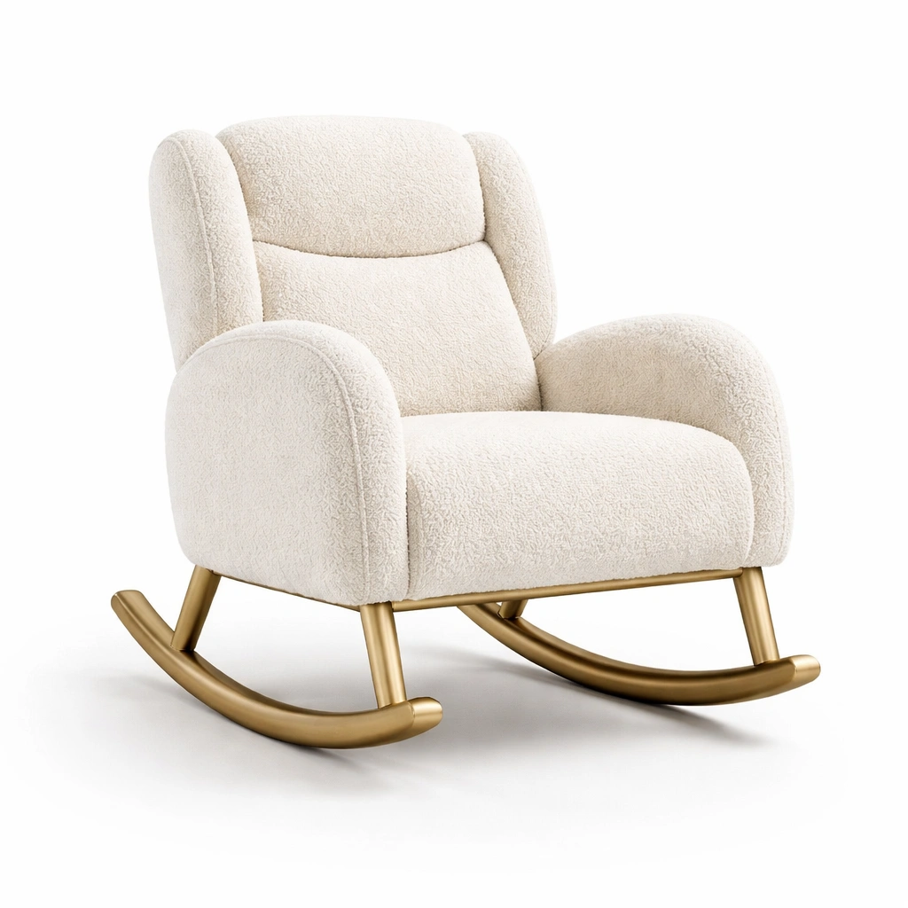Mecedora de tejido bouclé beige con base de metal